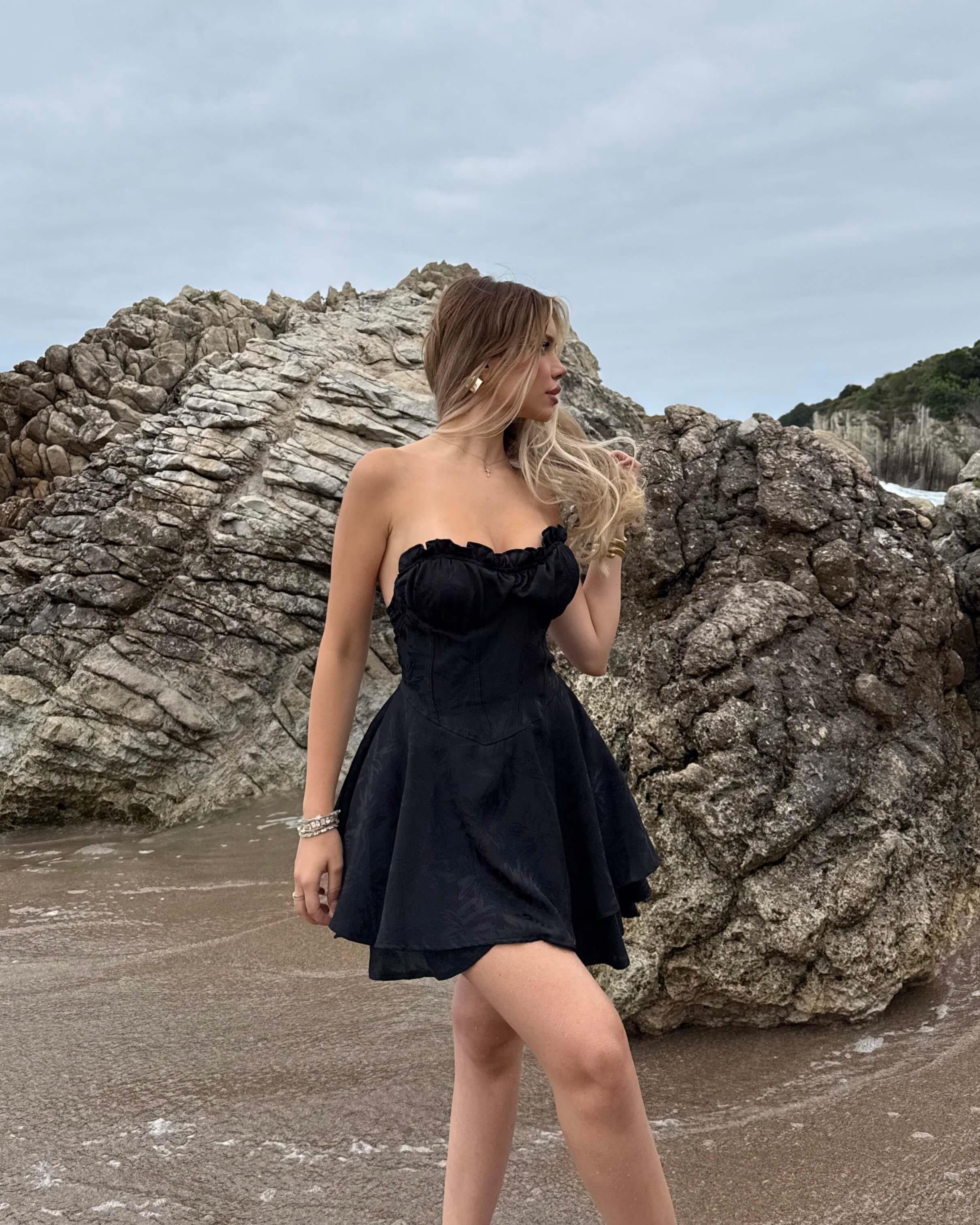 BASSIE BLACK STRAPLEZ ŞORTLU MİNİ ELBİSE