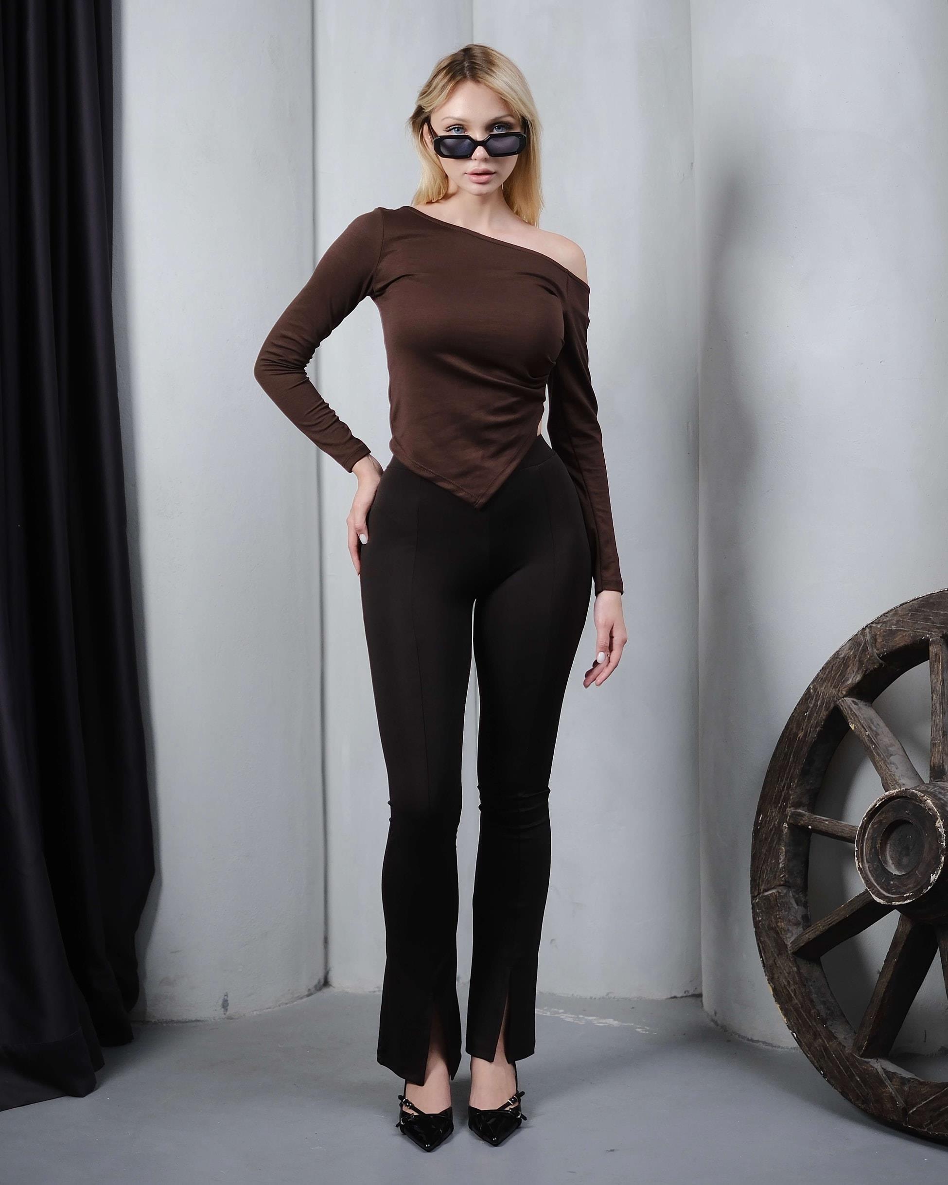 RENA BROWN ASİMETRİK BLUZ